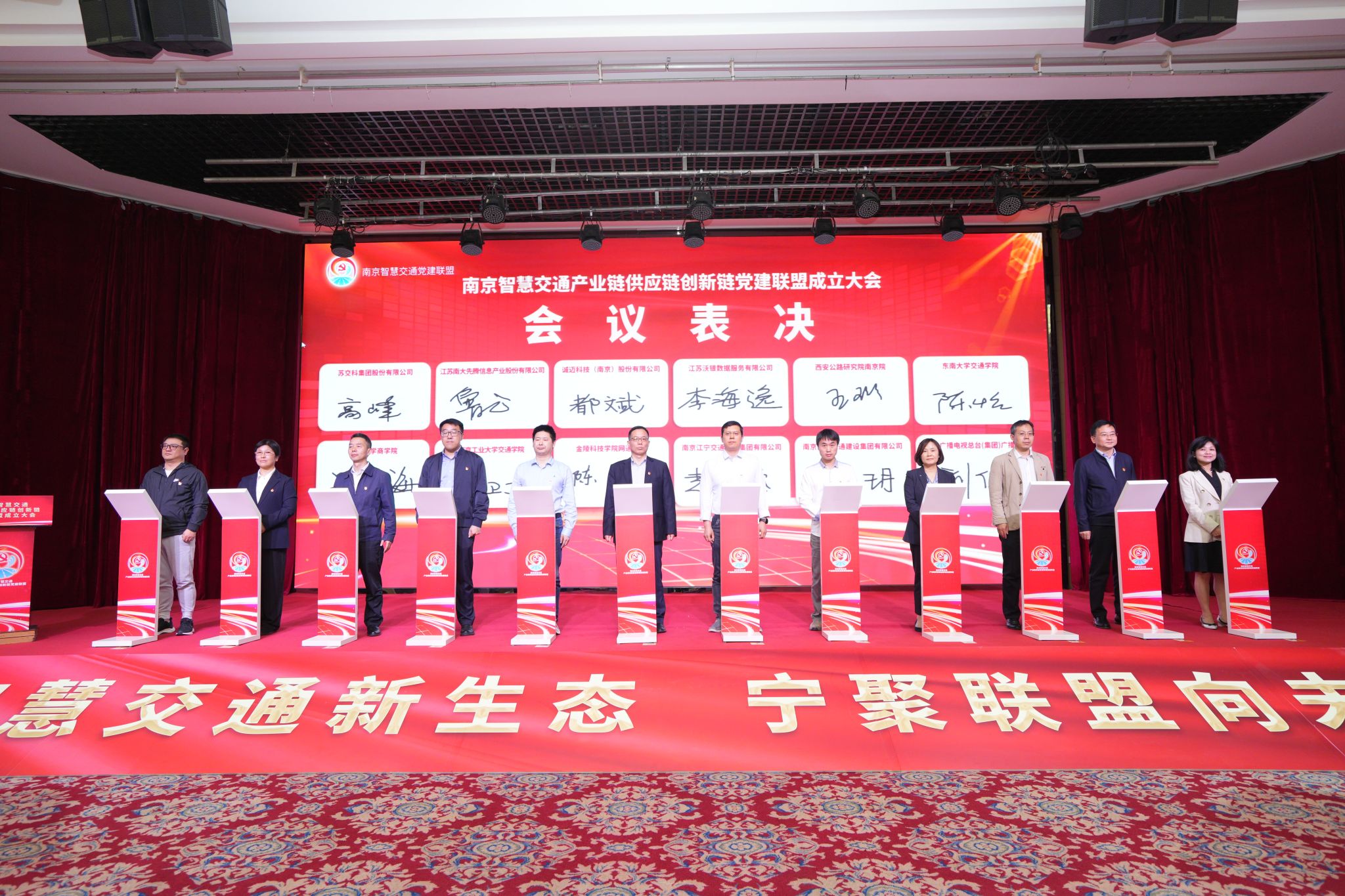 南京智慧交通产业链供应链创新链党建联盟,是目前南京市首家智慧交通领域的党建联盟,集合含我校williamhill英国在内的36家交通领域各类企事业单位。联盟立足创新链、服务链、人才链、产业链、资本链“五链融合”,以“六共、四联”拓展思路、丰富载体、推动实践,有效融合产业、科技、服务、资金、人才等资源,坚持科技赋能、创新驱动,搭建市域路桥隧营运管理“数智大脑”,构建“绿色、低碳、智能、安全、可持续”的新时代“交通生态”,培育国内领先、省内一流的“智慧交通样板”,切实发挥交通基础设施支撑保障作用,助力南京加快建设国际性综合交通枢纽城市,为中国式现代化南京新实践作出积极贡献。