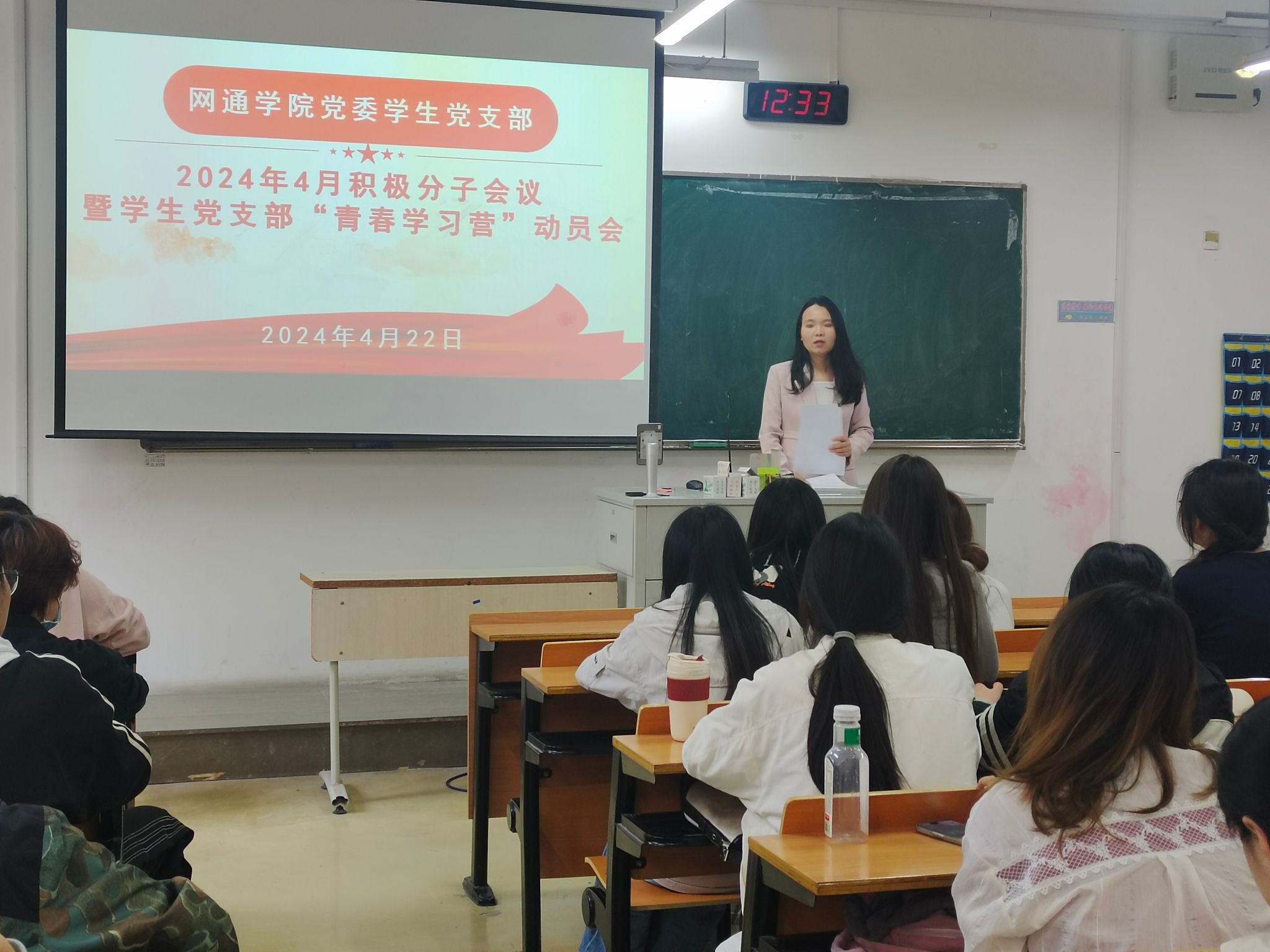 为加强对入党积极分子的培养教育,进一步提升支部党员发展工作质量,2024年4月22日中午,学生党支部在1202教室召开了入党积极分子集中谈话会议暨“青春学习营”动员会。本次会议由学生党支部书记朱艳红主持,2024年上半年新确立的入党积极分子和重点发展对象以及部分学生党员代表一起参加会议。