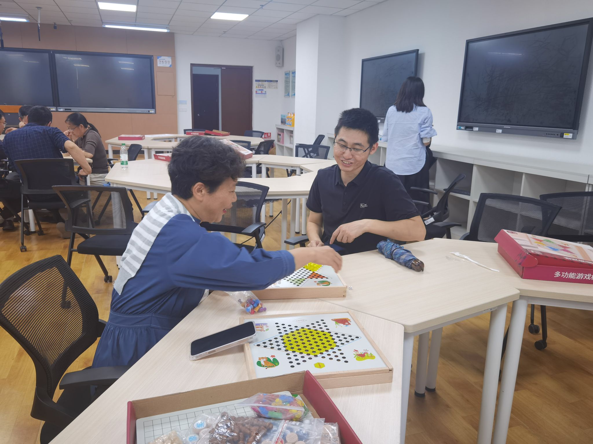 跳棋比赛同样精彩。老师们精心布局,巧妙搭桥,用智慧和策略展开一场场激烈的对决。彩色的弹珠在棋盘上跳跃,如同老师们活跃的思维在碰撞。大家在比赛中相互切磋,共同进步,享受着跳棋带来的乐趣。
