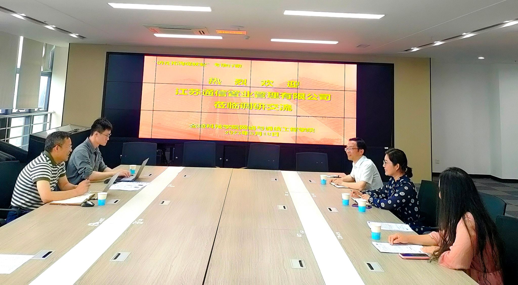 王池社副院长首先对江苏通信置业管理有限公司的到来表示热烈欢迎,并对学院的发展规模、办学特色、学科专业、人才培养等作了简要的介绍,并希望今后能够加强交流合作,依托企业的行业优势,积极为我院反馈人才培养方面的建议,不断提升毕业生的职场契合度和职业竞争力。随后,董宇副书记就学院校企合作交流情况,学生就业发展情况进行了介绍,并结合2023届毕业生的就业现状与毕业生求职需求,对下一步密切校企合作,开展系列就业指导活动向公司发出了邀约。