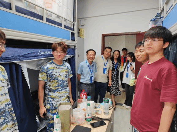 走访过程中,王池社十分关心新生们的生活状况和对未来的规划,鼓励新生们要珍惜大学时光,勇于探索未知,善于思考、勤于努力、不断进步。沐阳深入查看了宿舍设施设备完善情况和卫生状况,耐心倾听同学们的心声,悉心解答各种疑惑,鼓励新生之间要相互帮助,共同进步,形成良好的宿舍文化。亲切的话语、真诚的关爱,让新生宿舍中传递出阵阵舒心的笑声。