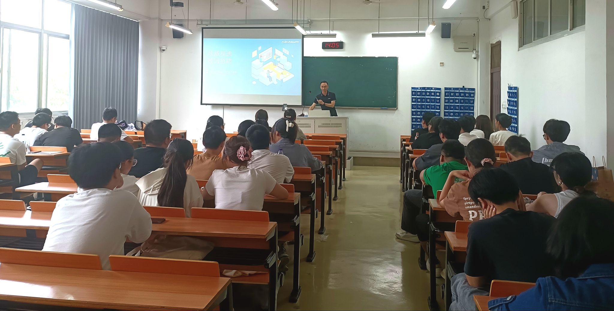 为拓宽毕业生就业渠道,加强校企联系,促进学生和用人单位的交流和联系,9月25日下午,网通学院邀请了欣威视通信息科技股份有限公司到我院开展招聘宣讲活动。通信系副主任刘威、毕业班班主任王玮和毕业班辅导员朱艳红三位老师以及2025届毕业生参加此次活动。