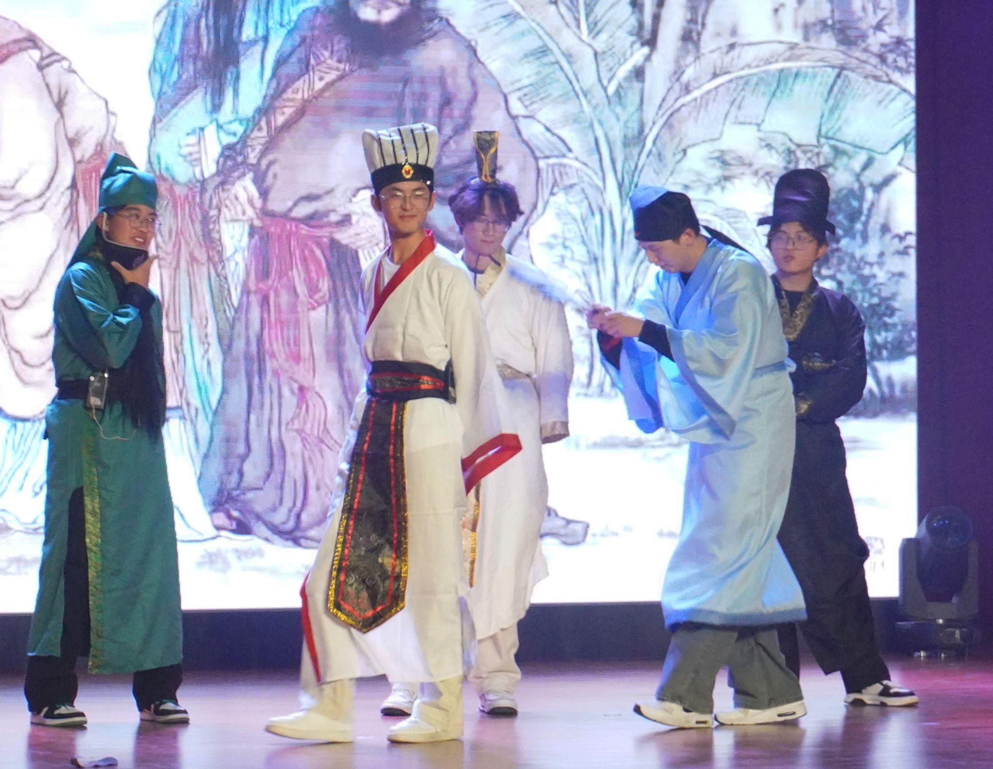 在本次晚会中,我院同学排演了三个节目,其中小品《玩转三国之先生请出山》融入了当代大学生学习、生活等方面的元素,因其贴近学生生活的剧情,赢得了现场观众的热烈掌声。朗诵《跨越百年的承诺》、歌曲《如愿》更是激发起了现场师生的爱国主义情感和对中国特色社会主义事业的自信自豪之情。其他学院同学们也带来了异彩纷呈的节目,让现场观众大饱眼福,除此之外,精心设计的互动游戏与抽奖环节将晚会气氛推向了高潮,师生们齐聚一堂共贺新年,欢声笑语不断,整个礼堂洋溢着浓厚的节日氛围。