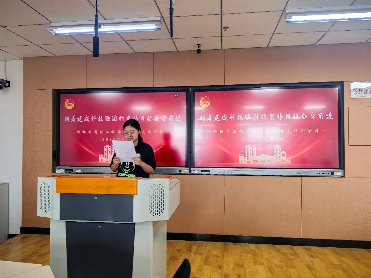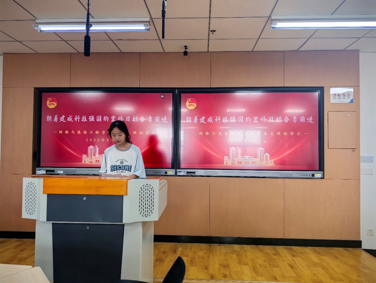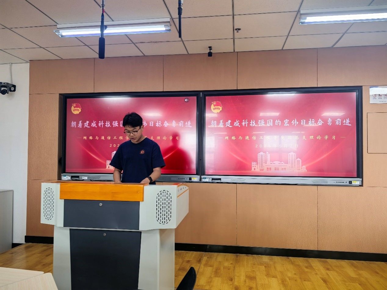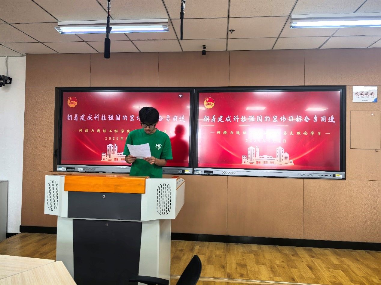 会上,重点发言同学结合实际分享了对科技创新的看法。团总支副书记刘政泽认为,青年大学生应将个人理想融入国家科技发展,以“四个面向”为指引,夯实学科基础、参与科研实践、弘扬科学家精神,在科技创新中发挥先锋作用。组织部部长张照跃认为,通信技术是科技竞争的焦点,通信工程专业学生应夯实专业知识、加强跨学科协作、关注国际前沿,决心攻克“卡脖子”技术难题。团支书辛卓颖认为,大一新生应拒绝躺平,从夯实基础、培养创新思维和长期习惯入手,将“微小努力”转化为科技强国的“蓄力”,以青年担当投身科技征程。团支书刘佳豪认为,新时代青年需肩负科技强国使命,直面核心技术“卡脖子”挑战,以坚韧不拔的精神攻克科研难题,将科技成果转化为服务社会的生产力,在时代机遇中勇担责任。团支书胡湘认为,大学生是科技创新主力军,需学好专业知识、参与科研实践,同时发挥团支书带头作用,带动班级营造科技创新氛围。