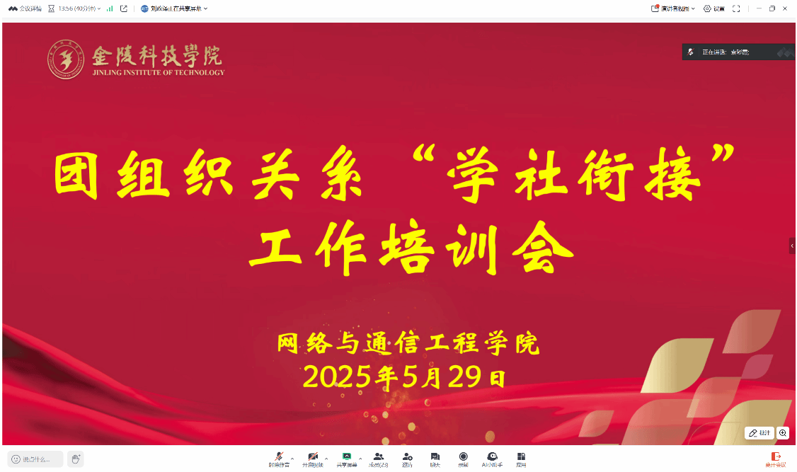 5月29日下午,我院召开毕业生团组织关系“学社衔接”工作培训线上会议,辅导员袁彩霞、团总支副书记刘政泽、学联组织部部长张照跃及大四团支书、部分大四团员参加了会议。