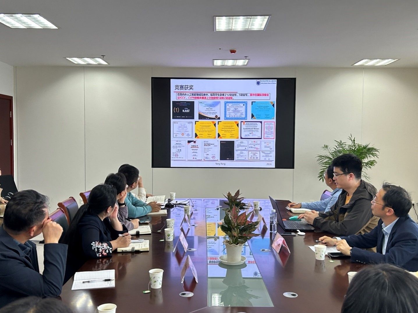 随后,杨教授以《不完备多模态学习研究与应用》为题,开展了一场精彩的学术讲座。讲座中,杨教授不仅分享了团队在相关领域的最新研究进展,还结合实际案例,生动展现了多模态学习在图像识别、语音识别、自然语言处理等多个领域的应用。此外,他还分享了团队在指导学生参加国内外各类竞赛中的优异成绩。他表示,竞赛是检验学生理论知识与实践能力的重要途径,也是培养学生团队协作精神和创新能力的有效平台。