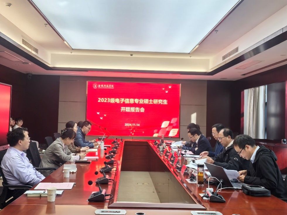 为提高我院研究生培养质量,促进研究生创新能力,11月14日上午,2023级电子信息专业硕士研究生开题报告会在科技楼4号楼裙楼会议室举行。安徽理工大学计算机学院院长方贤进教授担任评审专家组组长,软件学院院长曾岳教授、南京交通集团数创中心高级工程师杨璐副主任、安徽理工大学计算机学院梁兴柱副教授、许家昌副教授担任评审专家组成员。院长王池社及我院部分硕士生导师及相关专业教师参会旁听。
