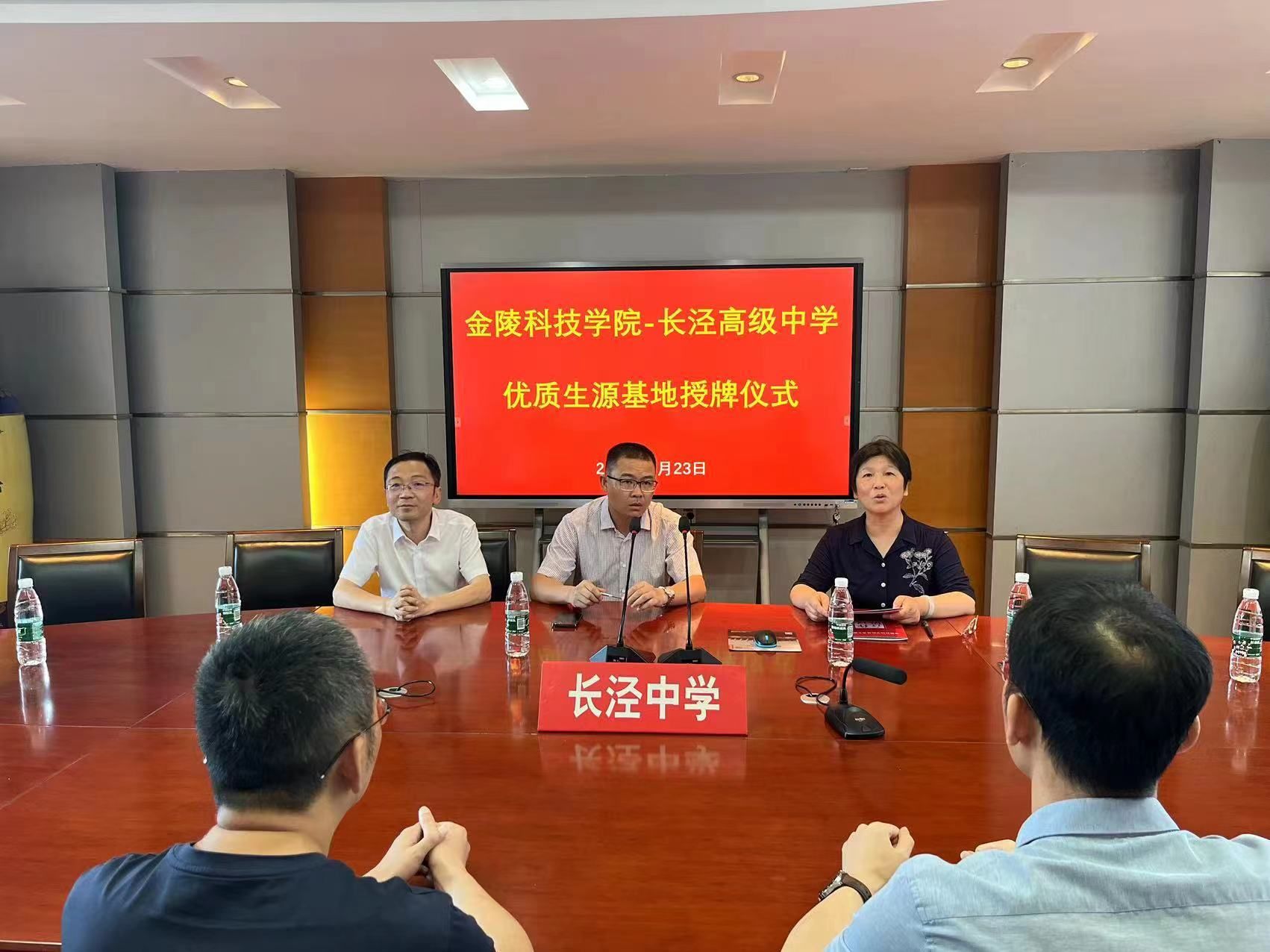 6月23日上午,williamhill英国党委书记陈健、副院长王池社、通信工程系副主任金秀峰等人一行来到江苏省江阴长泾高级中学举办2023年招生咨询会,并代表英国威廉集团与长泾高级中学举行“优质生源基地”授牌仪式,长泾高级中学校长杨风楼、副校长周鎏云等出席仪式。