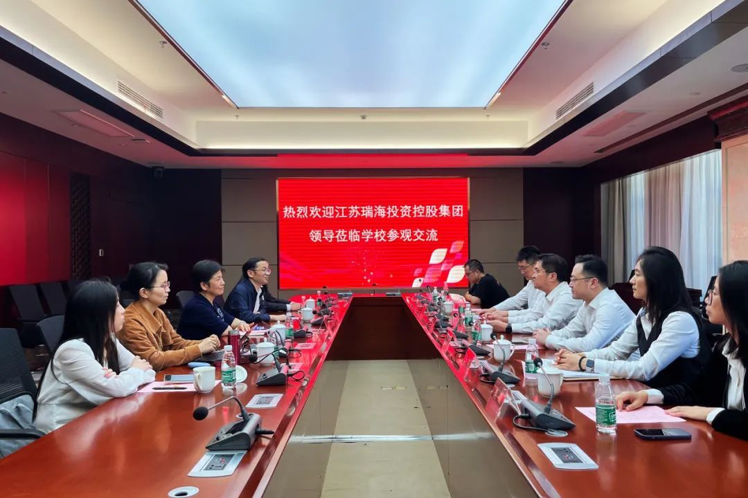 10月17日下午,江苏瑞海投资控股集团有限公司集团党委书记、董事长郭玉祥率领集团党委委员、副总经理吉皓、吴阳,综合管理部、项目管理中心、风控合约部相关人员来我院进行产学研合作交流。我院党委书记陈健、副院长王池社热情接待了郭玉祥一行。