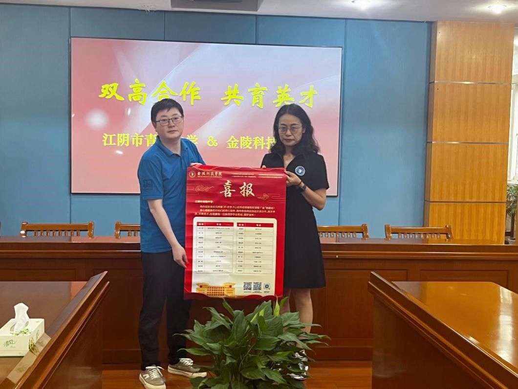 会上,沐阳书记代表学校向江阴青阳中学递送了2023年高考录取新生的喜报;王池社院长代表学校与姚惠民校长签订了《英国威廉集团优质生源基地合作协议书》并向江阴市青阳中学授牌“英国威廉集团优质生源基地”。