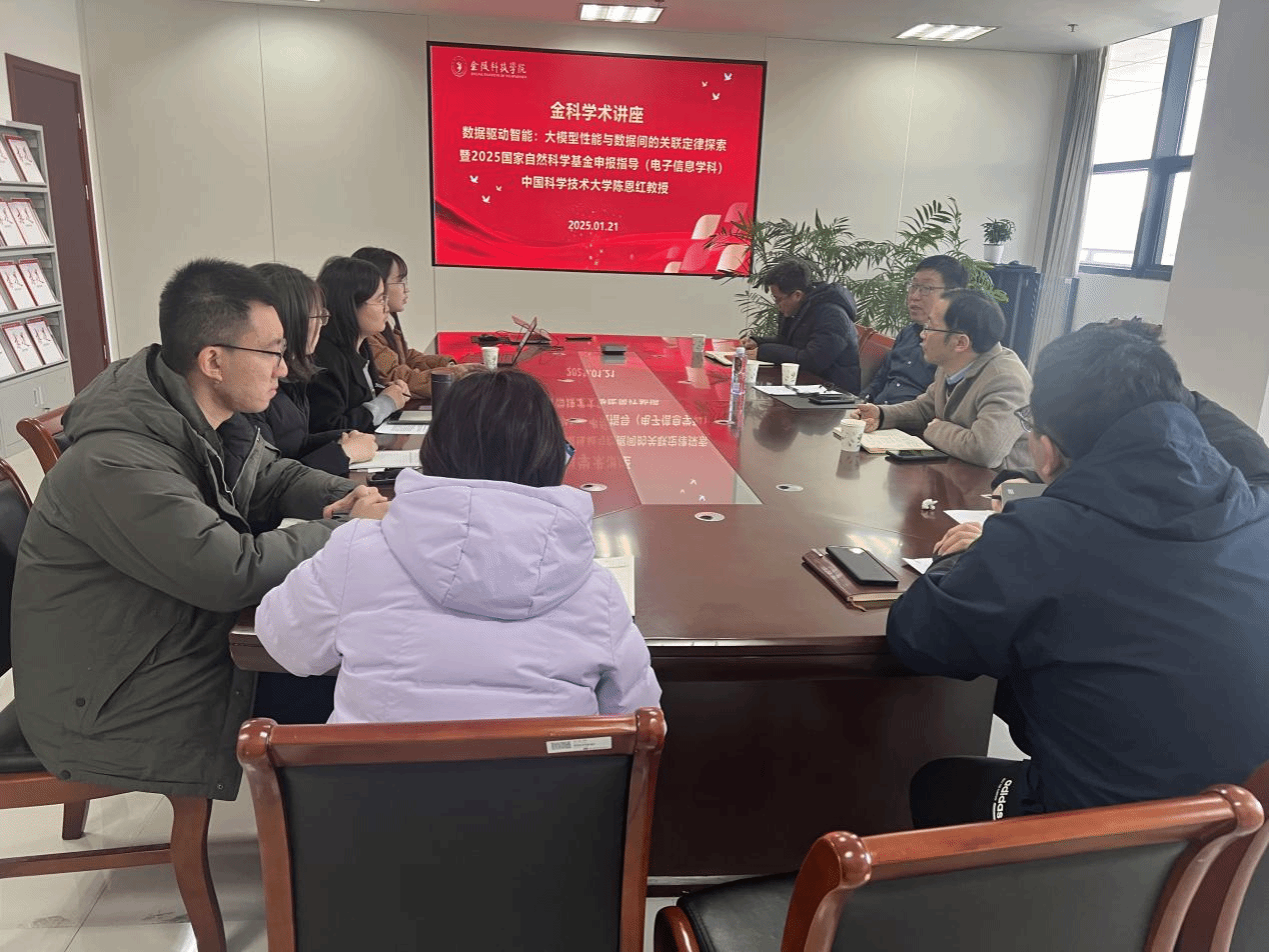 1月21日,由科技处、教师发展中心主办,我院承办的2025年第2期金科学术讲堂在科技楼4号楼616会议室顺利开讲。本期学术讲堂邀请了中国科学技术大学陈恩红教授开展题为《数据驱动智能:大模型性能与数据间的关联定律探索》学术讲座并对我校电子信息学科教师2025年国家自然科学基金申报进行辅导。讲座由我院院长王池社主持,williamhill英国、网络安全学院、电子信息工程学院、计算机工程学院等电子信息学科专业教师参加。